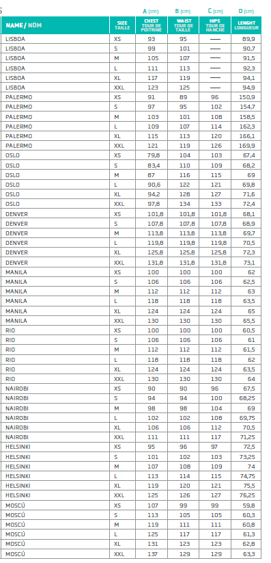 Trimmauspaitamekko (Lissabon), Housupuku (Palermo), Trimmaustakki (Oslo), Trimmauspaita (Denver, Manila), Trimmaustakki (Rio), Trimmauspaita (Nairobi, Helsinki), Trimmaustakki (Moscow)